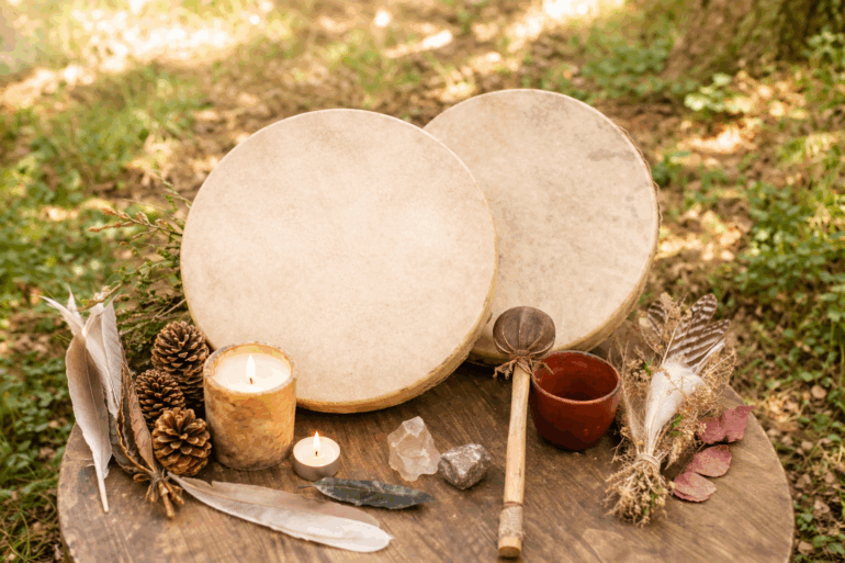 – Méditations guidées pour l’ancrage et la connexion à votre tambour à venir